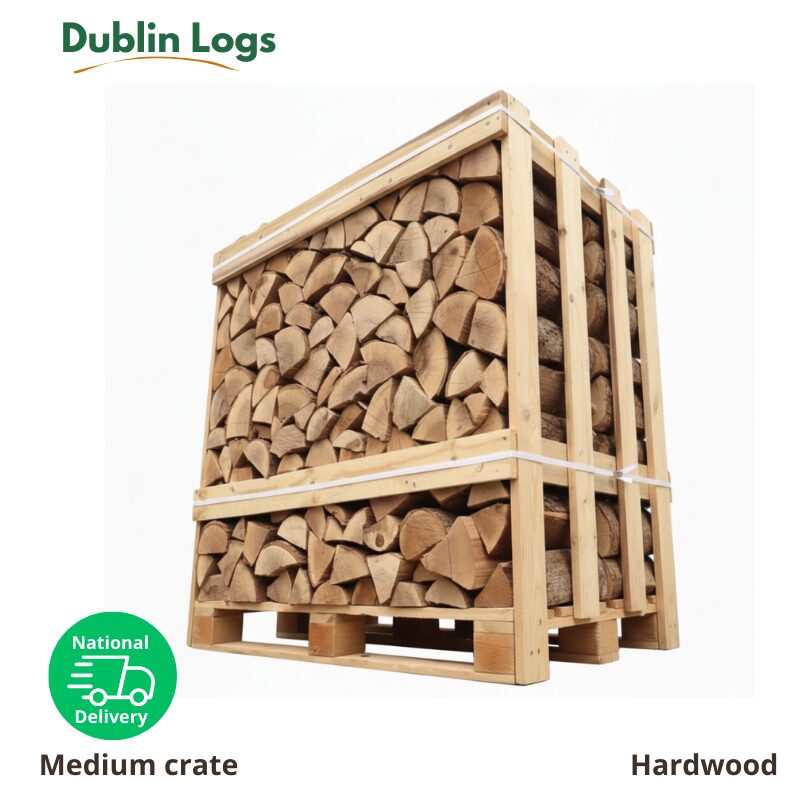 Our Medium Kiln Dried Crate gives you the perfect balance between quantity and practicality. With 1.2 cubic metres of kiln dried logs for sale, it provides more than enough fuel for regular use. Each log has been carefully kiln dried to a moisture content of 18% or less, meaning you can enjoy fast lighting, less smoke, and a warmer, cleaner burn.